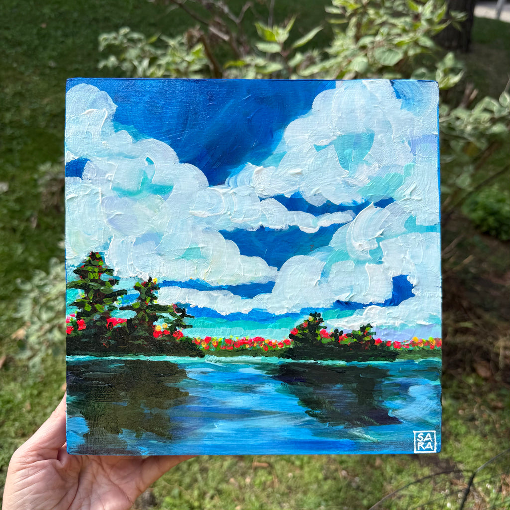 Size: 10" x 10" x 1.5" gallery wood panel. Signed, and ready to hang. Perfect for charming up your space, either on its own or as part of a little set.