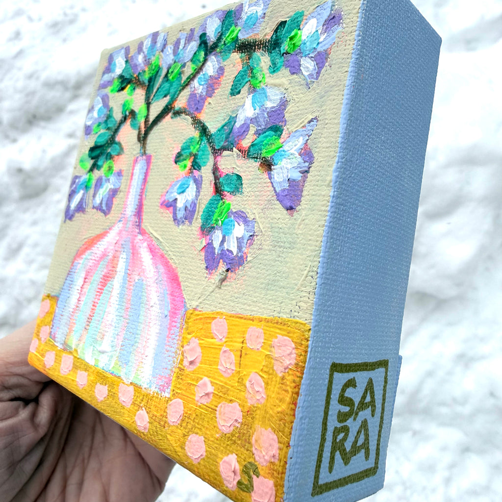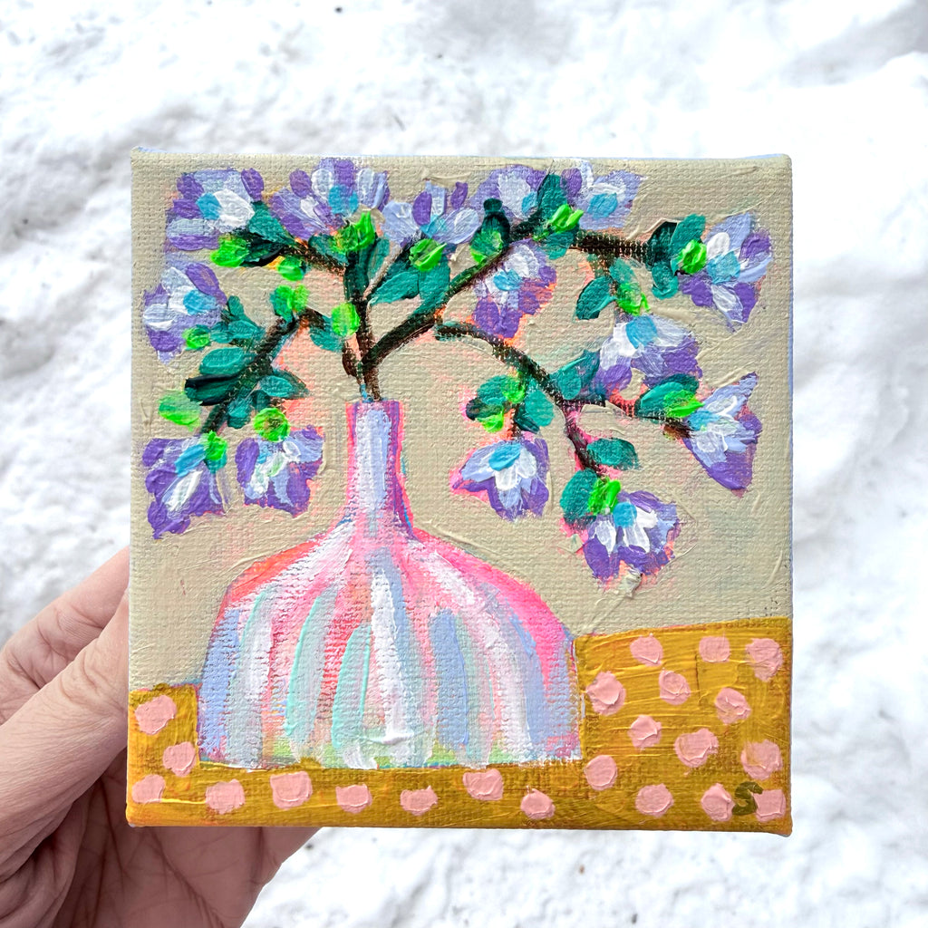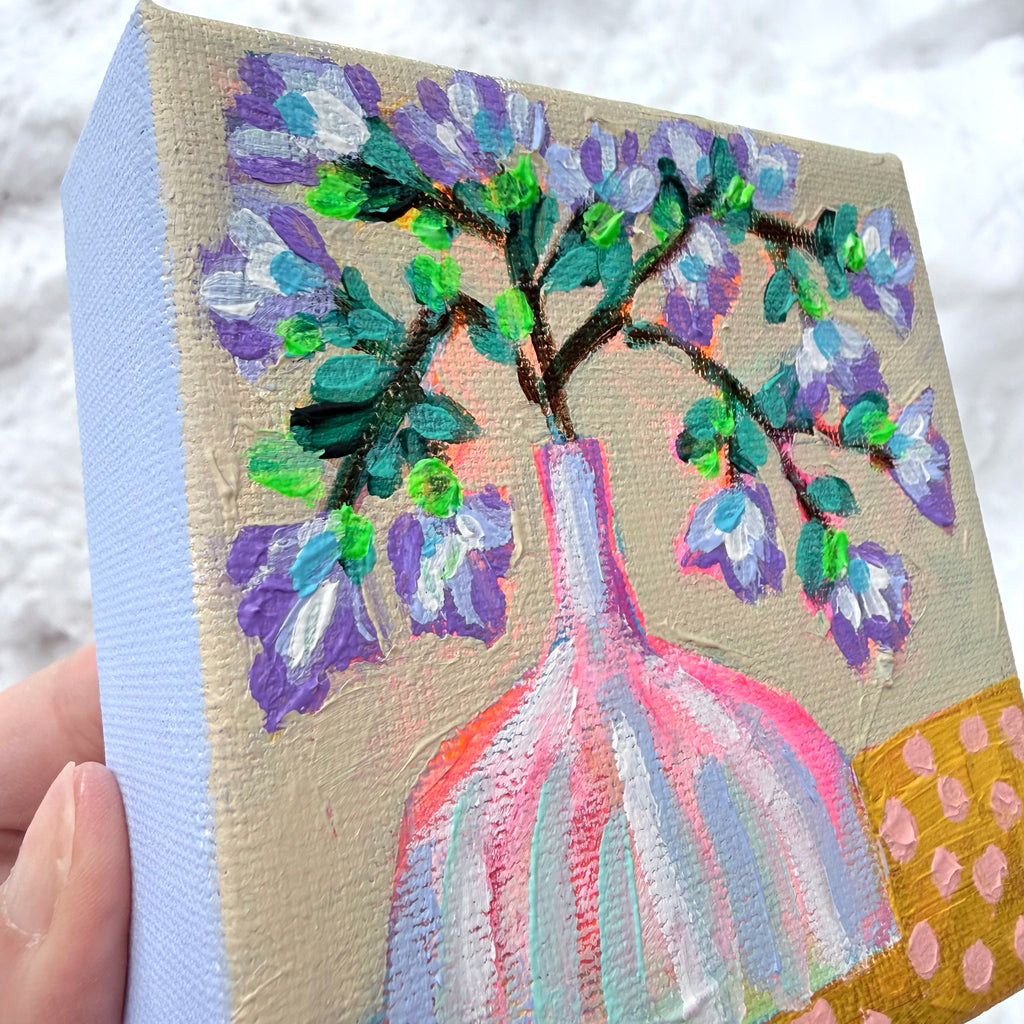 Treat yourself to a little love this Valentine's Day with this charming 4" x 4" x 1.5" acrylic painting on gallery canvas. Hang it solo for instant impact, or go bold and create an adorable gallery wall moment. Either way, it's ready to go and guaranteed to make you smile every time you walk by.