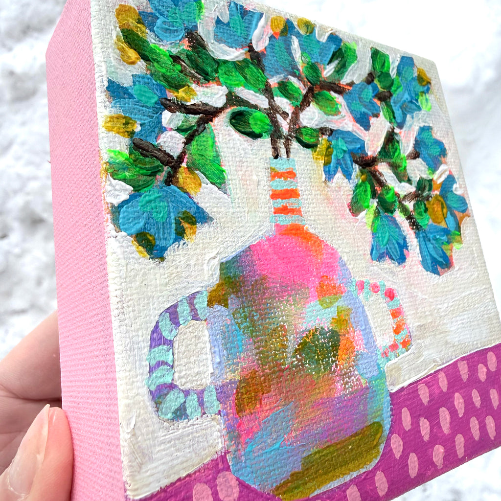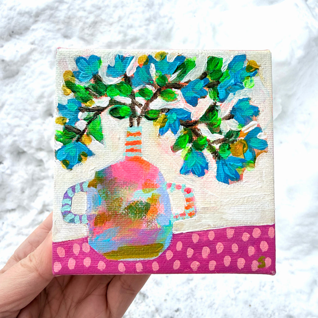 Treat yourself to a little love this Valentine's Day with this charming 4" x 4" x 1.5" acrylic painting on gallery canvas. Hang it solo for instant impact, or go bold and create an adorable gallery wall moment. Either way, it's ready to go and guaranteed to make you smile every time you walk by.